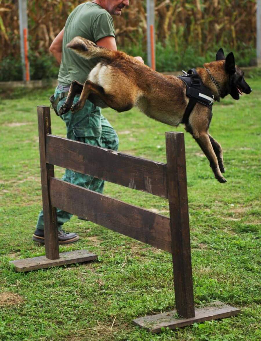 2. Napad i odbrana: Pas je obučen za napad i odbranu na komande. Poznaje naredbe za napad na cilj, zaustavljanje napada na naredbu i povlačenje na poziv.